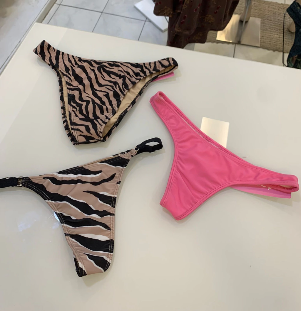 El combo incluye una bombacha colaless, una less regulable y una vedetina, estampados y colores según el stock disponible.